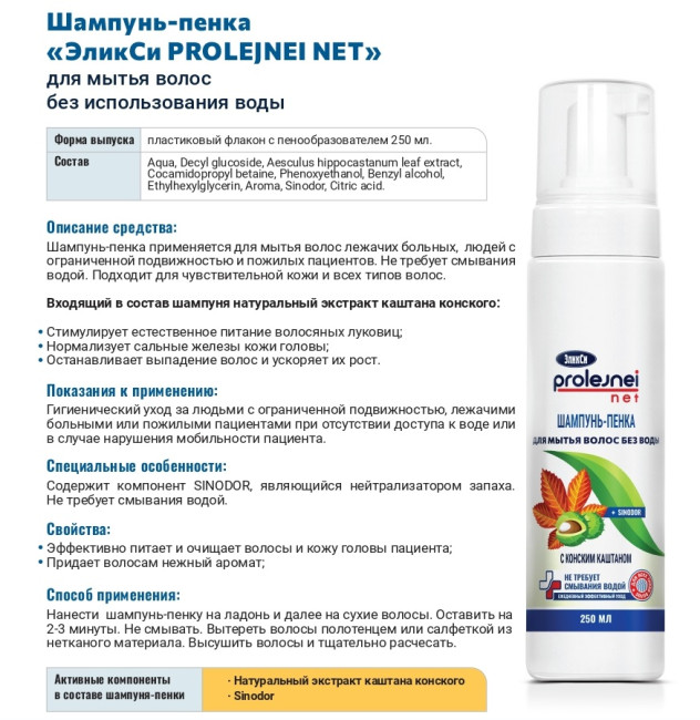 Шампунь-пенка с конским каштаном для мытья волос без воды «ЭликСи» Prolejnei net 250 мл